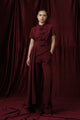 The set consists of a short-sleeve top featuring signature oriental frog buttons and wide-leg long pants. The pants are carefully tailored to fall gracefully, creating a lengthening effect without clinging to the body. Its relaxed silhouette ensures comfort while maintaining a polished and sophisticated appearance.
